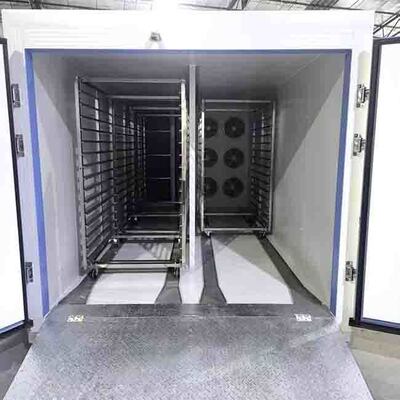 2.Σχεδιασμένο για ομοιόμορφη αφυδάτωση: Διαθέτει σύστημα κυκλοφορίας μεγάλου όγκου που τροφοδοτείται από μια τράπεζα 6 βαρέων ανεμιστήρων που παράγουν 3000-4500 m3/h συνεχούς ροής αέρα.Αεροδυναμικά κανάλια εδάφους πιέζουν τον ξηρό αέρα ομοιόμορφα σε όλα τα 180 δίσκια ταυτόχρονα, αποτρέποντας την τοπική μούχλα ή την υποξήρανση.