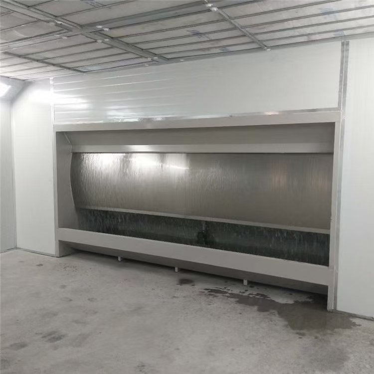 | Χαρακτηριστικά | Το χαρακτηριστικό του ντουλαπιού υδατοκουρτίνας είναι ότι η υπόλοιπη σκόνη βαφής κατά τη διάρκεια του ψεκασμού μπορεί να ψεκαστεί απευθείας στην πισίνα ή στην επιφάνεια της υδατοκουρτίνας, ενώ η οσμή που δημιουργείται κατά τη διάρκεια του ψεκασμού και μια μικρή ποσότητα μη απορροφημένης σκόνης βαφής φιλτράρονται μέσω της υδατοκουρτίνας πολλαπλών στρώσεων και στη συνέχεια εκκενώνονται στον ανεμιστήρα εξαγωγής. Εκτός του χώρου ψεκασμού, μπορεί να καθαρίσει το περιβάλλον εργασίας ψεκασμού και να προστατεύσει την προσωπική υγεία, και μπορεί επίσης να ενισχύσει την ομαλότητα της επιφάνειας του βαμμένου τεμαχίου. |