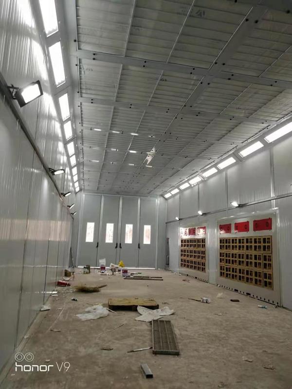Φωτισμός χωρίς σκιά: Διαθέτει γωνιακά φώτα οροφής και φώτα πλευρών στο ύψος της μέσης ($>1000$ Lux) για να αποκαλύπτουν ατέλειες στην επιφάνεια και να εξασφαλίζουν ακριβή αντιστοίχιση χρωμάτων.