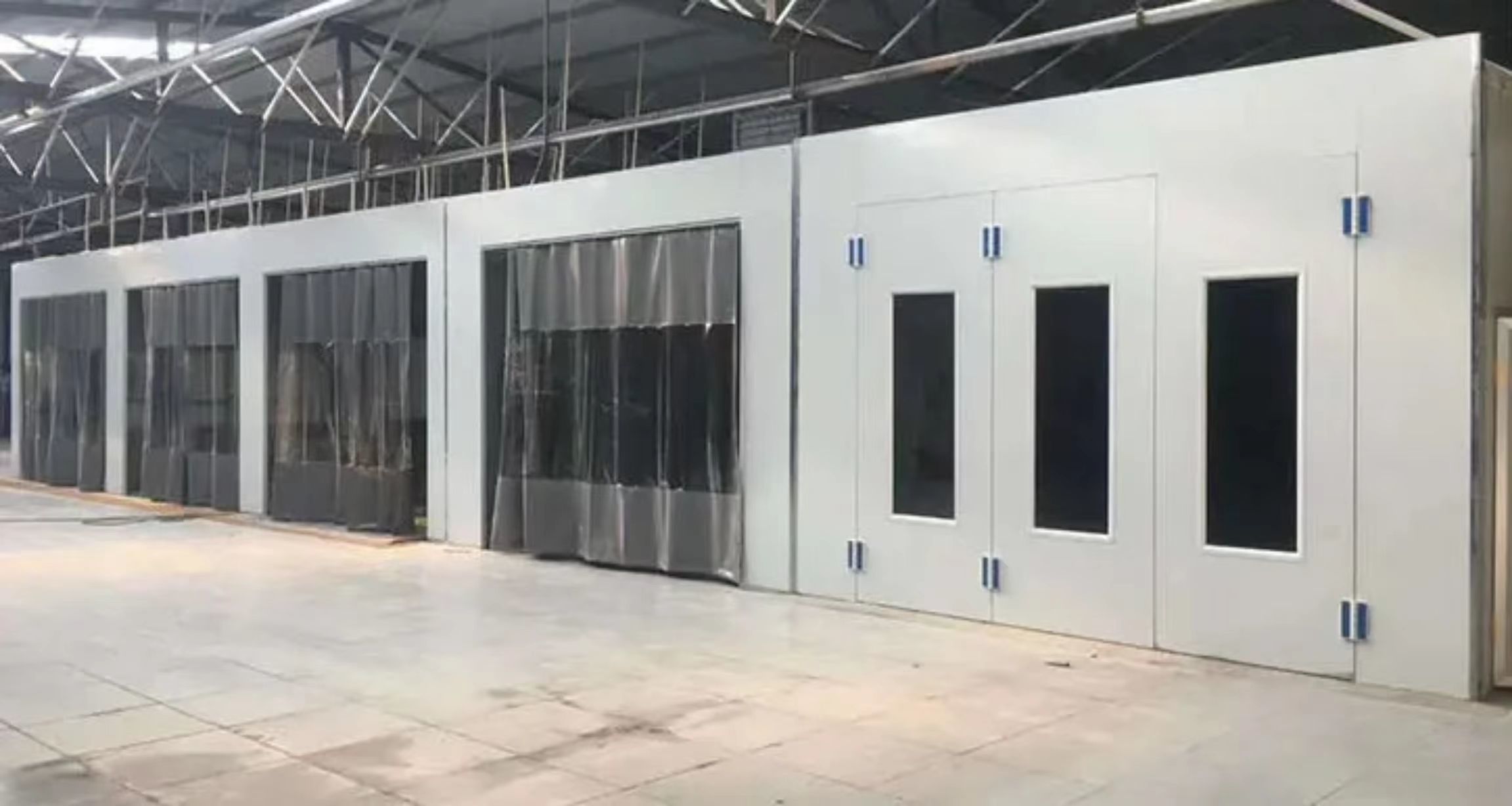 Κεφάλαιο κουρτίνας PVCΣε αντίθεση με ένα σταθερό θάλαμο, ο σταθμός προετοιμασίας χρησιμοποιεί συρόμενες κουρτίνες PVC.